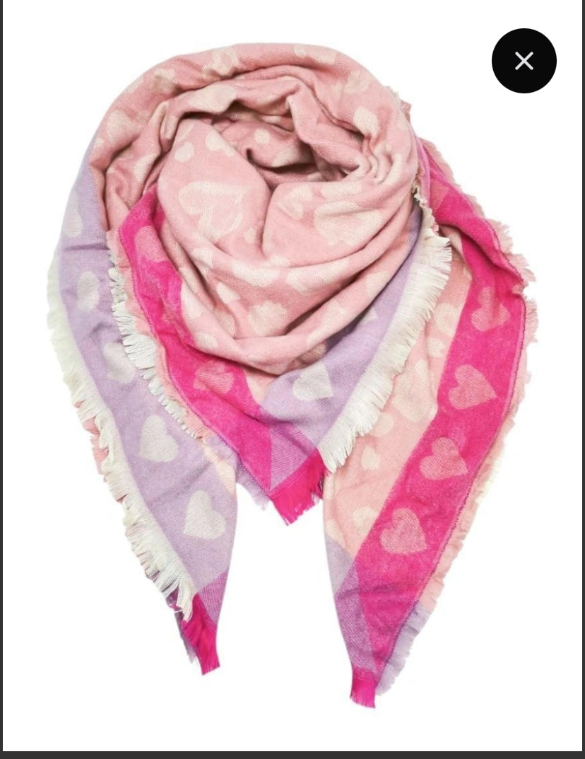 Écharpe carré double face de couleurs violette, rose fushia, rose et beige.